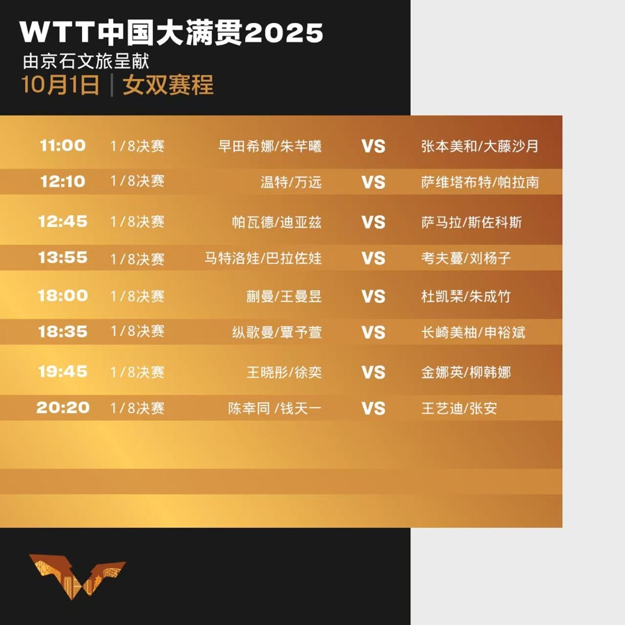 10月1日,王楚钦/孙颖莎将在混双1/4决赛对阵另一对国乒组合陈垣宇/蒯曼,后者经过5局大战,3比2战胜韩国组合林钟勋/申裕斌。谈到即将到来的比赛,王楚钦表示,“内战对大家来说都是最高水平的对抗,陈垣宇和蒯曼这对组合,这次也战胜了两对非常强的对手,他们的打法很有特点,实力也很强。所以对我们俩而言,接下来会专注做好自己,希望能为大家奉献一场精彩的比赛。”